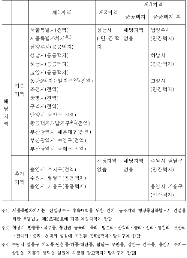 - 제3지역 : 공공택지(1년) / 공공택지 외의 택지(6개월)