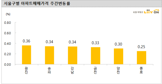 세부적으로 살펴보겠습니다. 서울의 경우에는 학군수요와 개발사업이 많은 광진구와 강남구를 중심으로 전지역에서 상승세가 이어지고 있습니다.