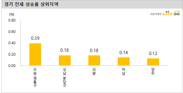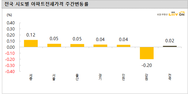 세부적으로 살펴보겠습니다. 서울의 경우 매매가격과 마찬가지로 학군수요가 풍부한 지역들의 상승세가 이어지고 있으며 나머지 지역들은 대부분 보합권을 형성하였습니다.