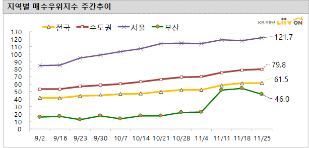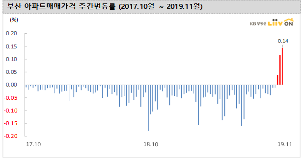 안녕하세요? 부자아빠의 부동산연구소입니다. 11월 29일 발표한 11월 25일 기준 KB부동산 주간아파트가격동향을 살펴보겠습니다. 2주 전 조정대상지역 해제에 따라 부산이 뜨거운상승세를 이어갔는데 어떻게 흘러갔을지 살펴보도록 하겠습니다.