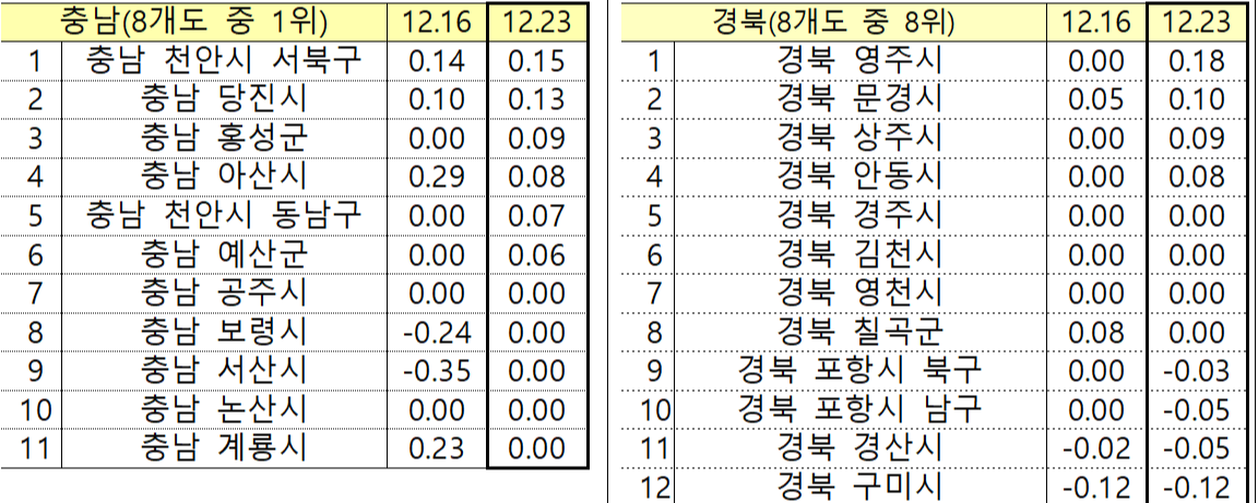 - 그 외 지방 8개도는 0% → 0.02% 상승하였습니다.