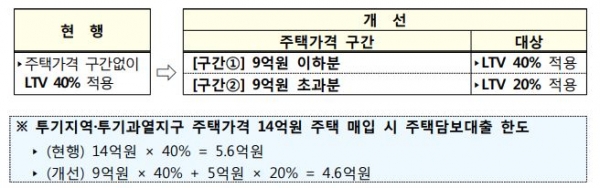 또한, 투기지역 및 투기과열지구의 시가 15억 원의 초고가 주택에 대해서는 주택담보대출이 금지되었습니다.(기존 40%, 가계·개인사업자·법인 등 모든 차주 금지 / 단, 재건축 및 재개발 조합원이 1주택 세대로서 사업 추진(조합설립인가) 전까지 1년 이상 실거주한 경우 등 불가피한 사유가 인정될 경우는 예외 허용)