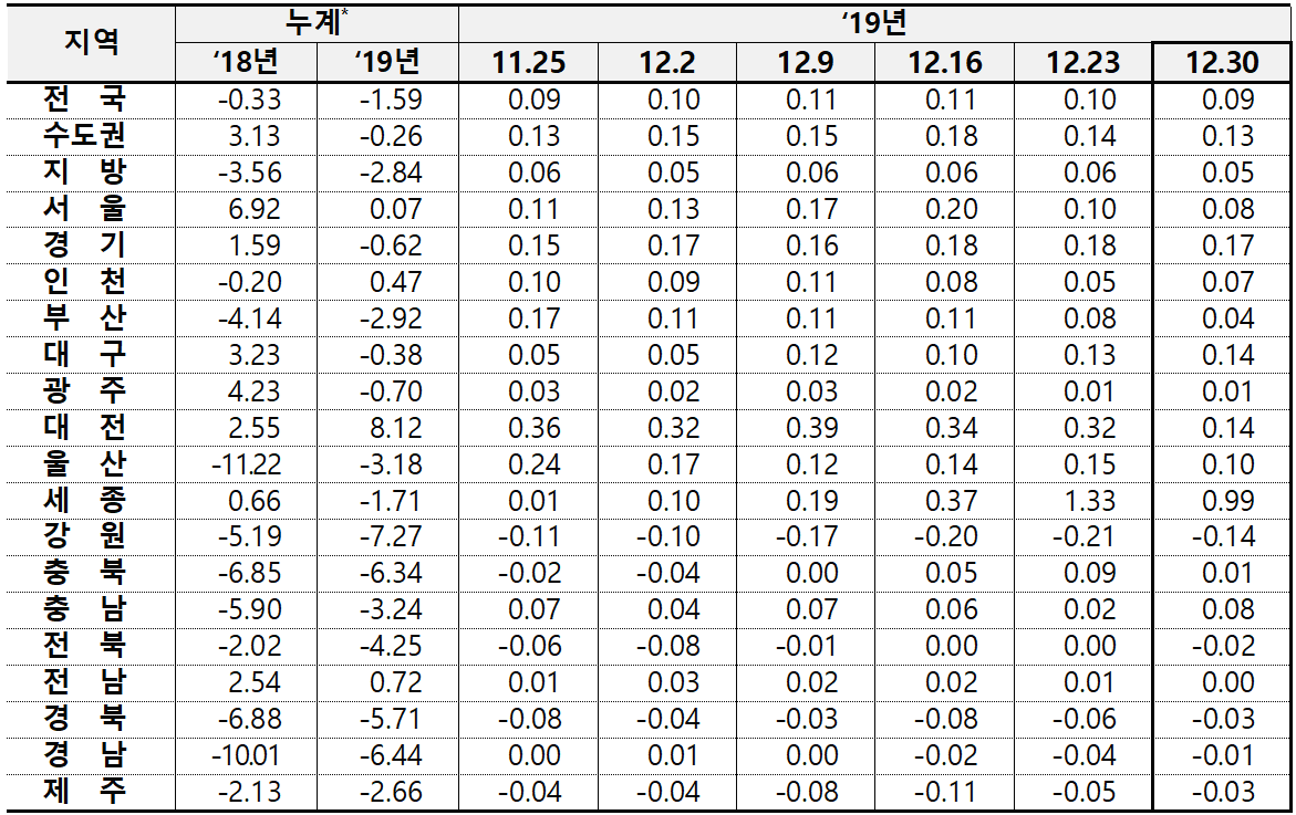 | 2019년 12월 30일 기준 주간아파트가격동향(KB부동산) (0) | 2020.01.04 |
