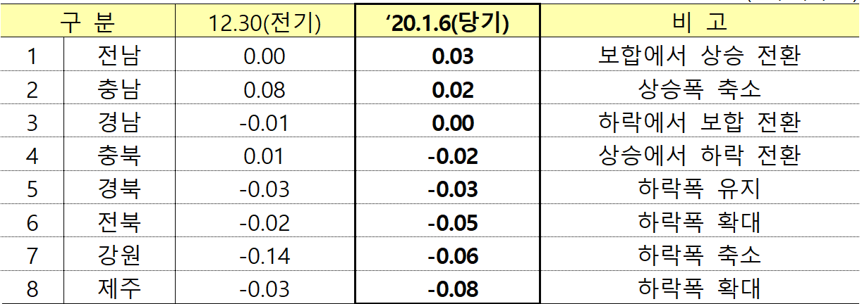 - 그 외 8개도(-0.01%->-0.02%)로 하락폭이 확대된 모습입니다.