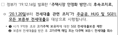 1. 고가주택 보유자에 대한 SGI(서울보증보험) 전세대출 보증 제한