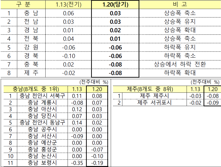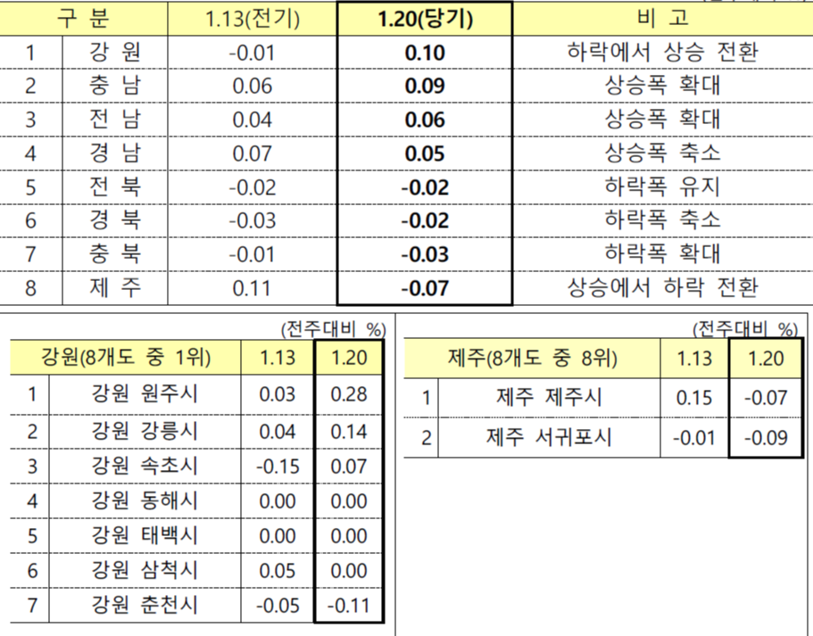 - 8개도(0.02%->0.03%)는 상승폭이 확대되었습니다.