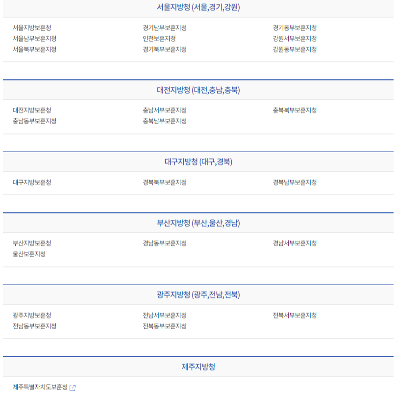 - 접수처 : 주소지 관할 보훈(지)청(링크는 PC버전만 가능, 모바일은 별도 검색 필요)