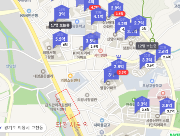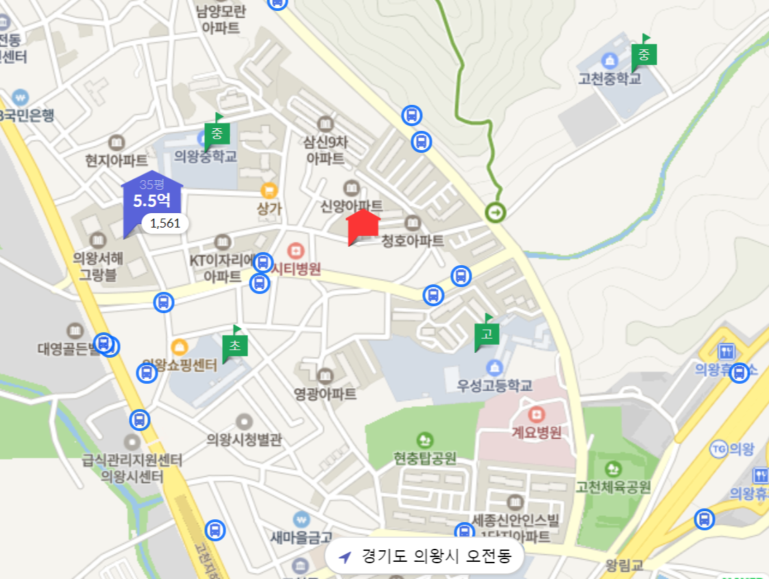 (1) 입지 : 의왕시에 위치해있고 내손구역 재개발지역 가운데 있네요, 다만 100세대미만 나홀로라는것이 아쉽네요, 내손구역이 재개발완료되고 인동선이 개통된다면 좋아질 수 있겠습니다.