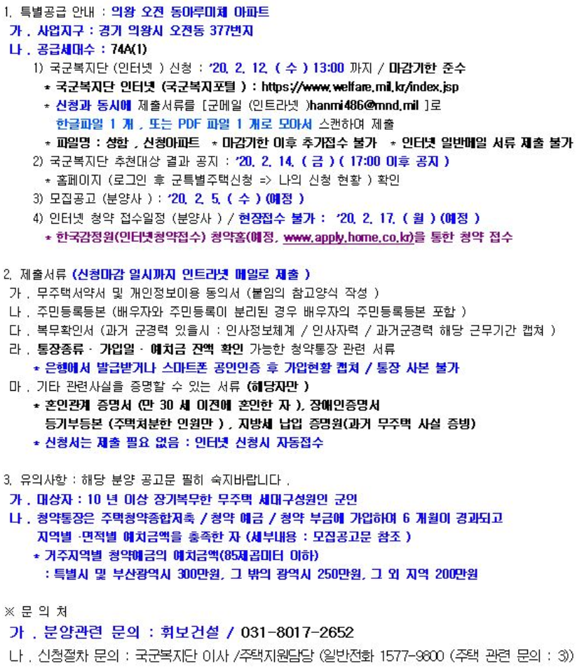 * 군인특별공급과 관련된 정보는 기존 포스팅을 참고바랍니다.