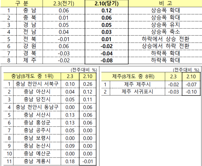 - 8개도(0.02%->0.03%)는 상승폭 확대되었습니다.