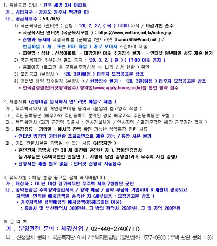 * 군인특별공급과 관련된 정보는 기존 포스팅을 참고바랍니다.