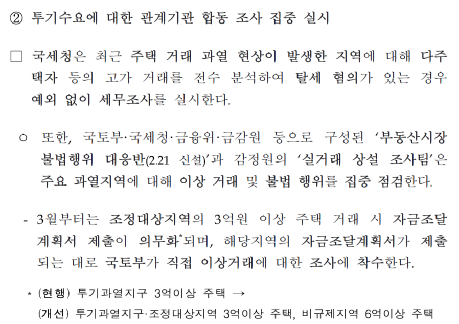 2. 투기수요에 대한 관계기관 합동조사 집중 실시