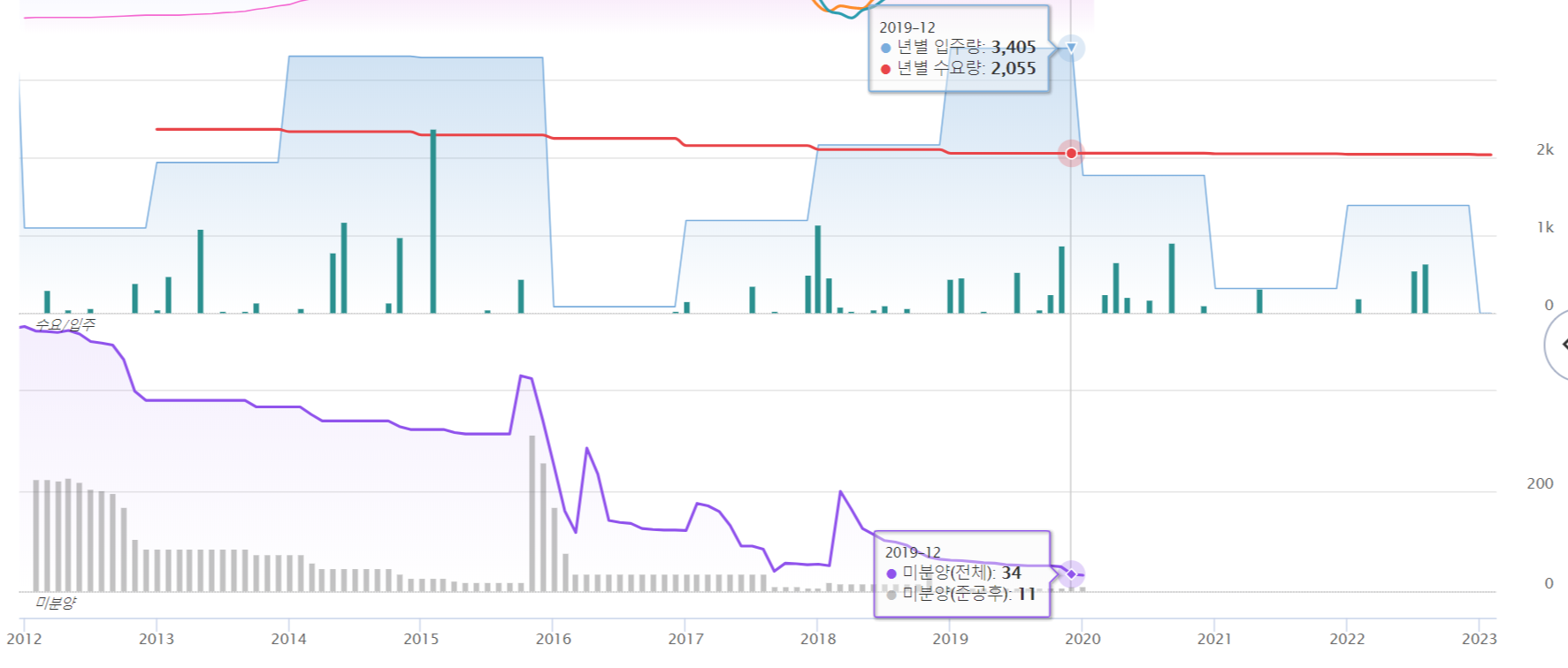 (2) 수요 및 공급 : 해운대구의 입주물량은 점차 감소하는 분위기네요.