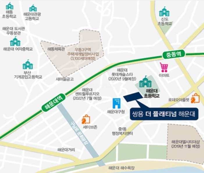 (1) 입지 : 부산2호선 중동역 역세권 아파트입니다. 입지는 해운대구에 위치해 좋아보입니다.