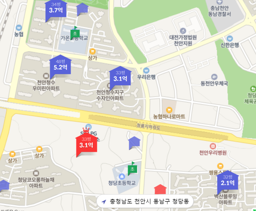 (1) 입지 : 천안 청당동에 위치해 있으며 1호선이나 경부선을 이용하기에는 조금 거리가 있습니다.