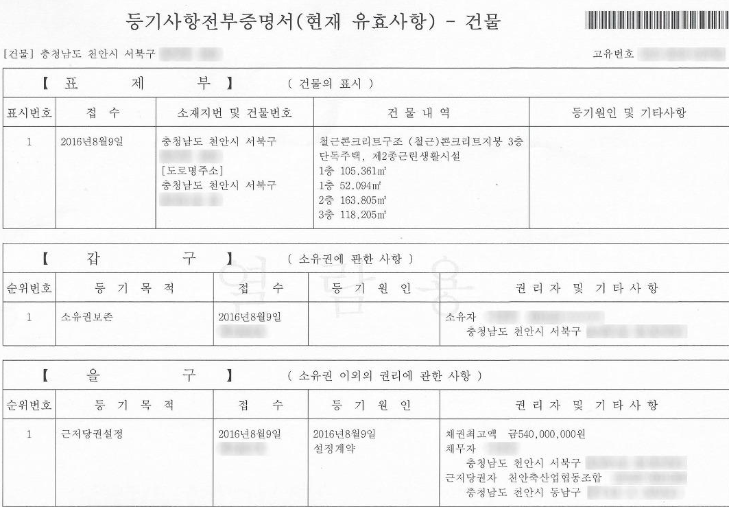 등기부 등본은 위의 사진에서 보시는 바와 같이 크게 표제부, 갑구, 을구로 나뉩니다.