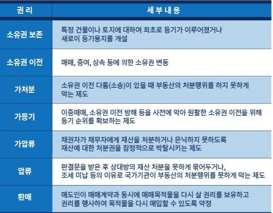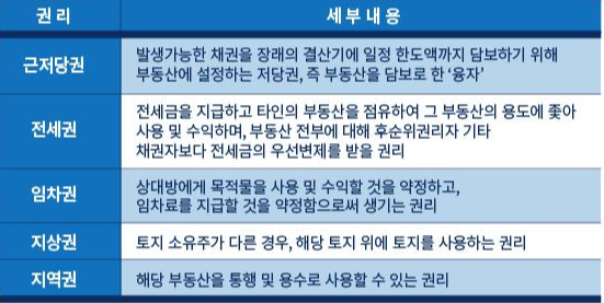 * "을"구의 등기 목적의 대표적인 권리 설명입니다.