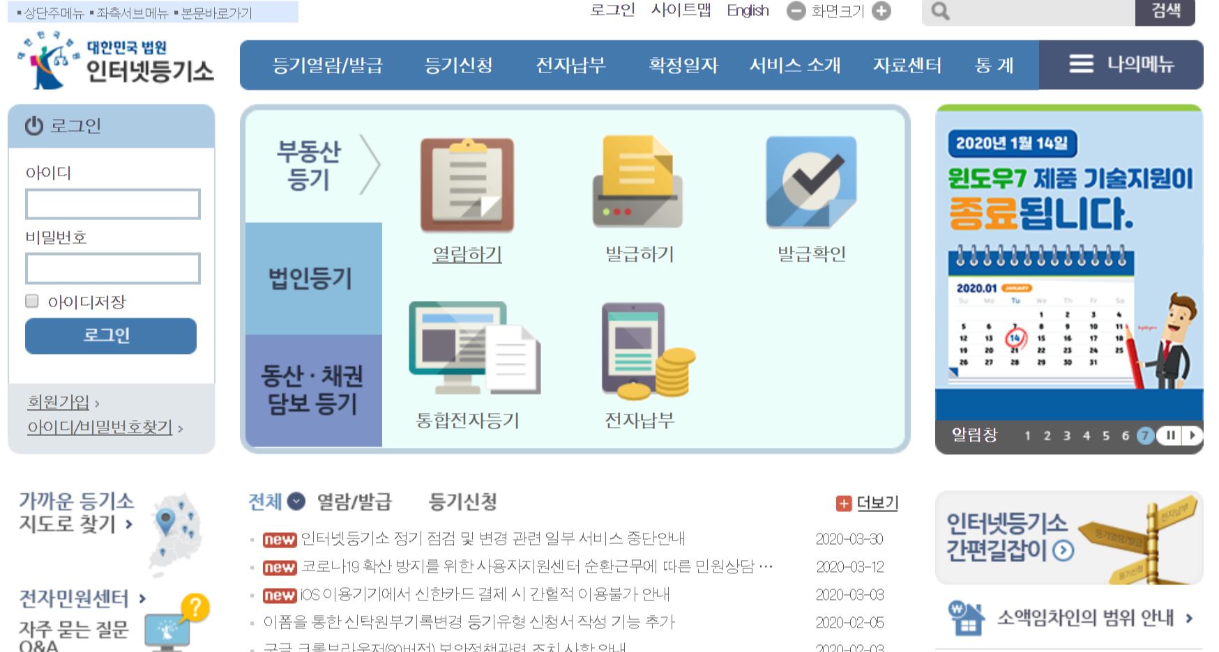 대표적으로는 인터넷등기소(사이트 링크)에 접속해서 열람 및 발급이 가능합니다.(열람: 700원, 발급: 1,000원)
