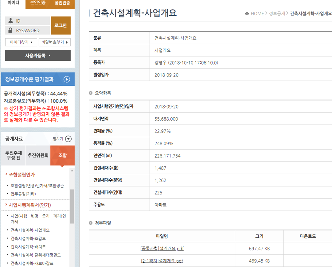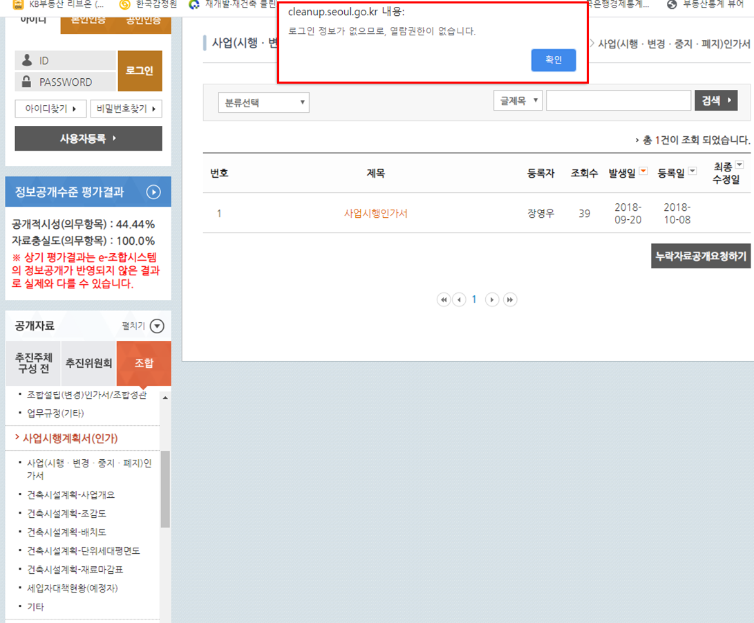 그러나 모든 정보가 공개되는 것은 아닌데요, 사업시행 인가서를 클릭했더니 로그인을 요구합니다. 위에서 언급한 정보들을 제외하고 대책 현황이나 자금집행 등은 조합원들에게만 공개하고 있어 일반인들은 열람이 불가합니다.