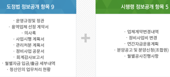 - 주택 재개발 / 주택 재건축 / 도시환경정비사업 별로 정보공개 표준 홈페이지를 제공합니다.