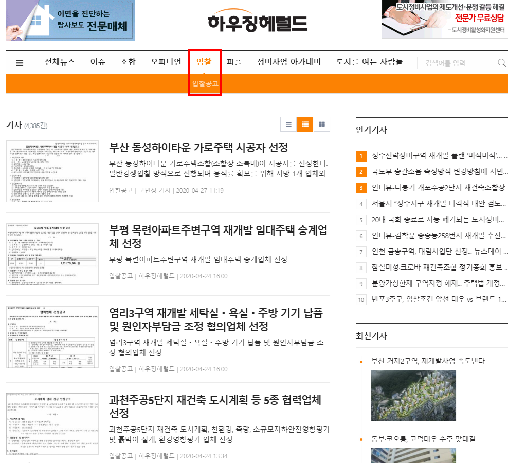 이처럼 '하우징해럴드'라는 매체를 통해서 정비사업에 관해 많은 정보를 습득할 수 있는데요,
