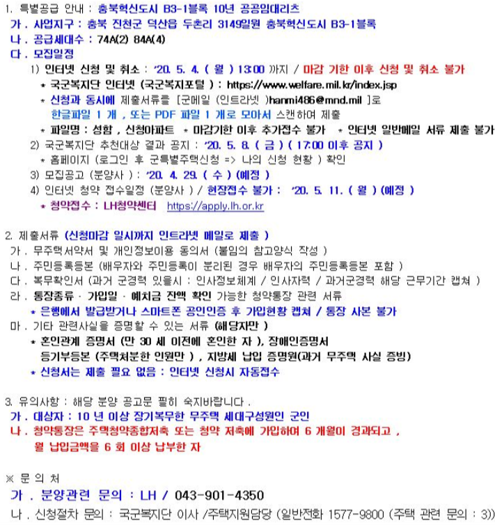 * 군인특별공급과 관련된 정보는 기존 포스팅을 참고바랍니다.