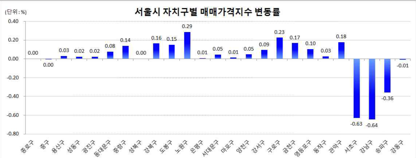 - 서울은 코로나 19와 보유세 부담 영향 등으로 매수심리 위축된 가운데, 서울은 '19년 6월 이후 상승세가 10개월 만에 하락으로 전환됐습니다.