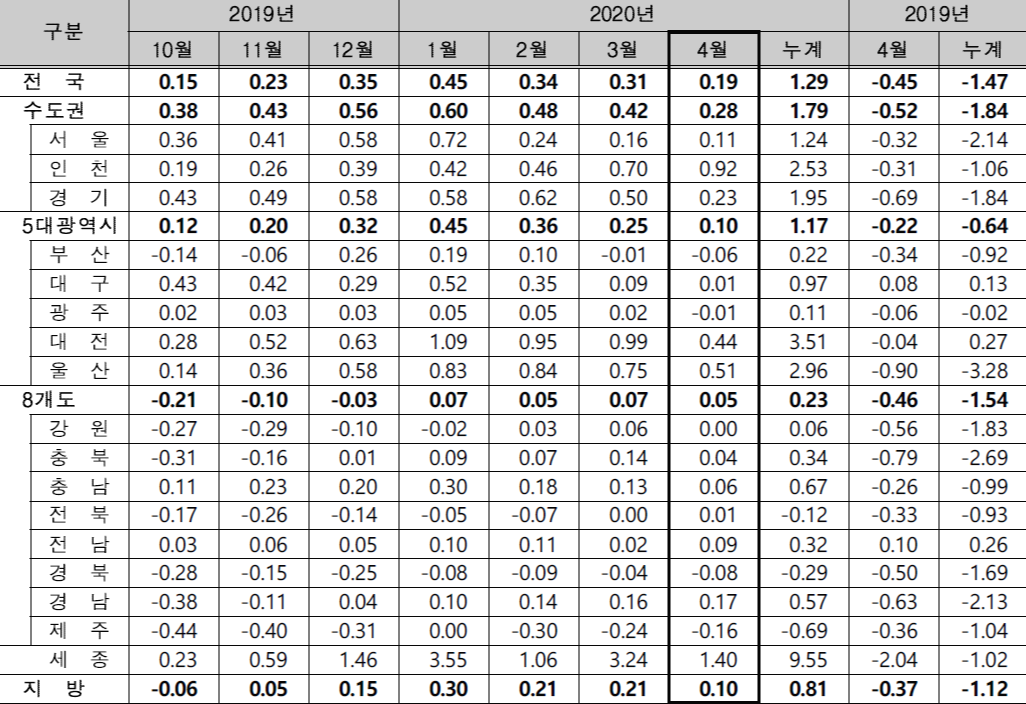 | 4월 월간 주택가격동향(KB부동산) (0) | 2020.04.28 |