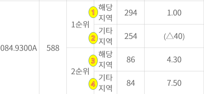 ① 총588세대 중 해당지역 50%인 294세대가 할당되었네요, 1순위 해당지역은 정확히 294명 접수하였습니다.