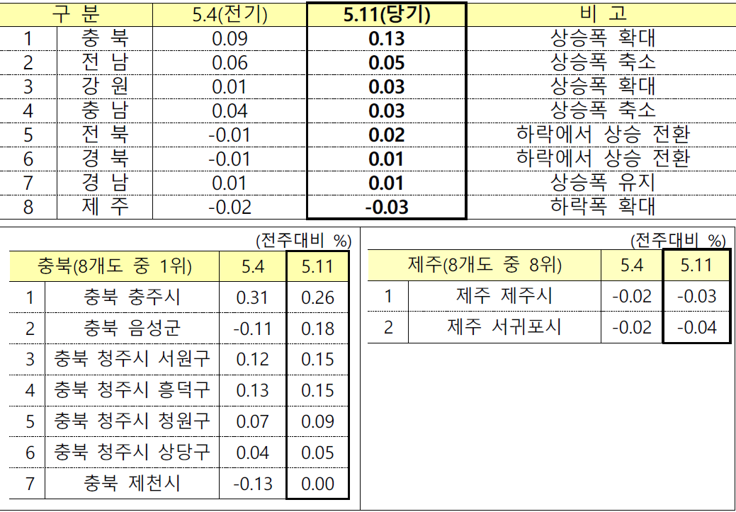 - 그 외 8개도(0.00%->0.01%)는 소폭 상승했습니다.
