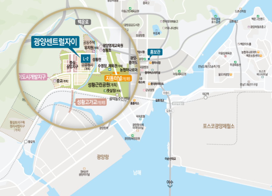 (1) 입지 : 광양에 성황,도이 도시개발사업지구 분양하는 곳으로 신규택지지역입니다.