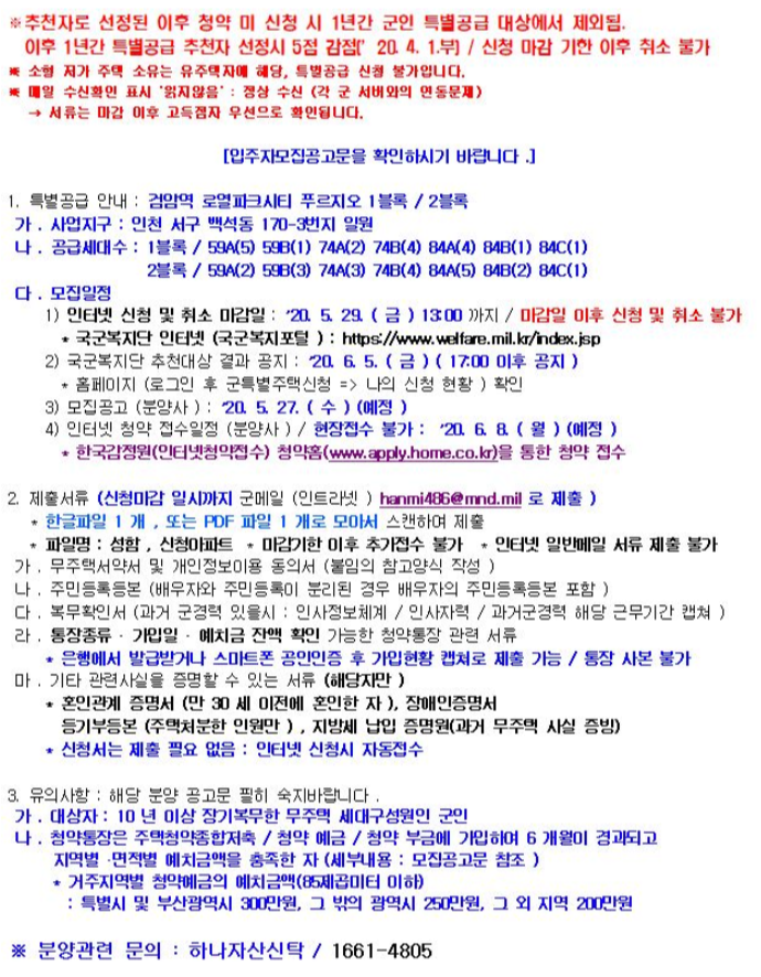 * 군인특별공급과 관련된 정보는 기존 포스팅을 참고바랍니다.