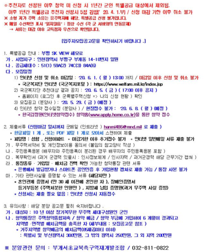 * 군인 특별공급과 관련된 정보는 기존 포스팅을 참고 바랍니다.