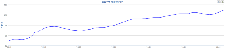 한국감정원 발표 전국 종합주택 매매가격지수(2010년 ~ 2020년)