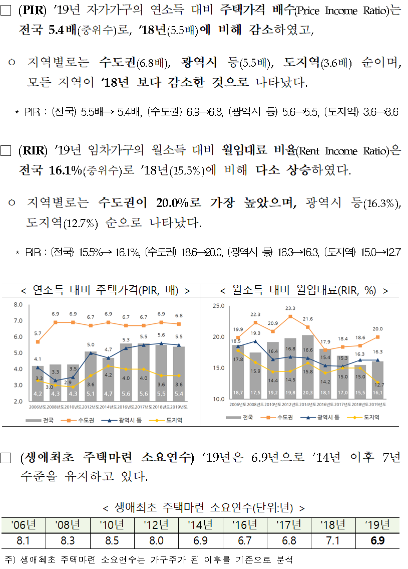 국토부 발표자료에 의하면 2018년보다는 2019년이 PIR이 낮아졌다고 하는데요, 조금은 의아하긴 합니다. 전국적으로 집값이 많이 오른상태라 PIR 커졌을 것 같은데 말이죠..