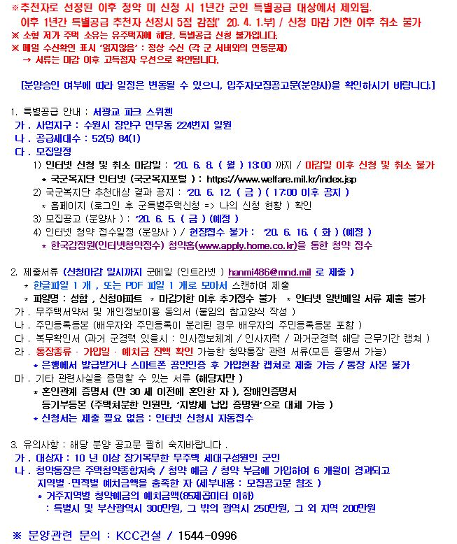 * 군인특별공급과 관련된 정보는 기존 포스팅을 참고바랍니다.