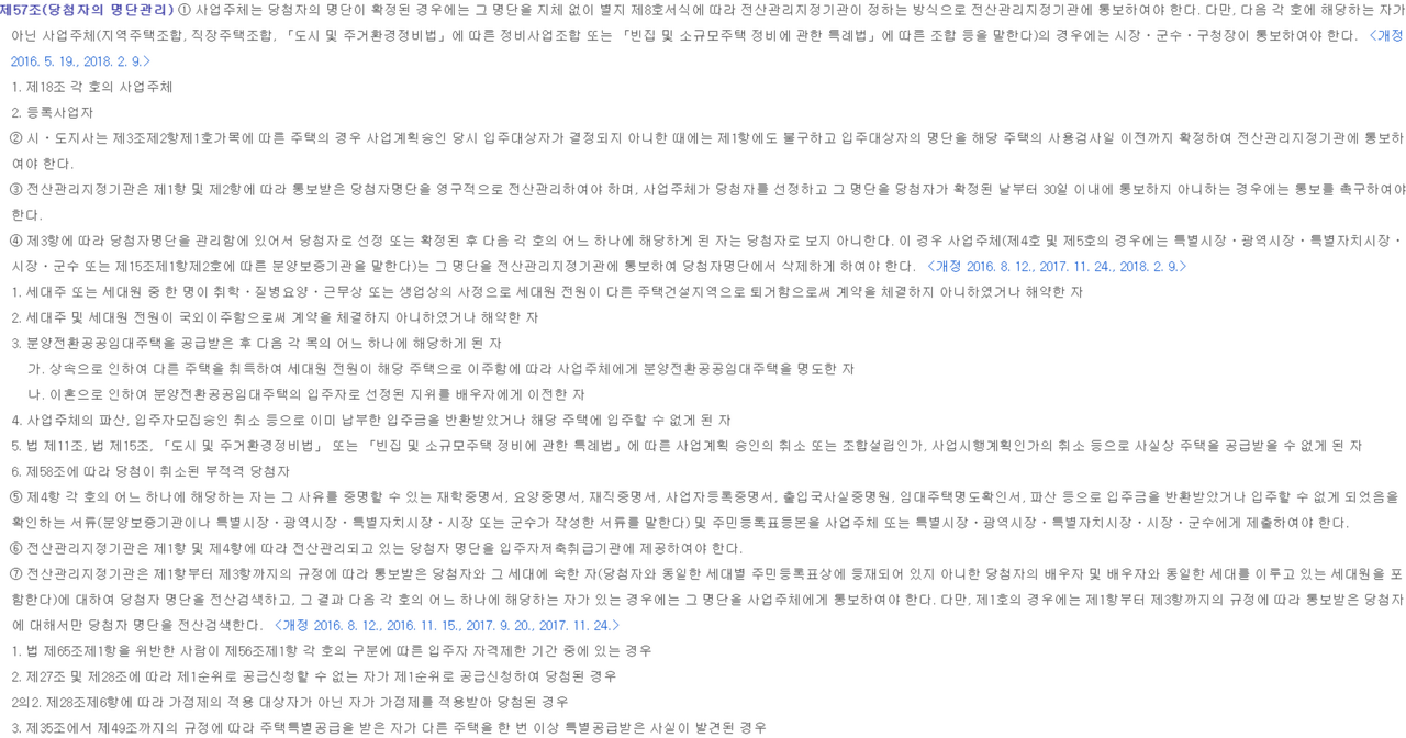 '주택공급에 관한규칙' 제57조 당첨자 관리에 따라 청약 당첨 후에 부적격 당첨자가 아닌 경우에는 당첨자 명단에서 삭제되지 않고, 전산관리지정기관(현, 한국감정원)에 통보하여 영구적으로 전산관리되고 있습니다.