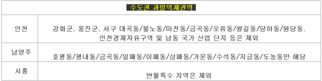 마지막으로 과밀억제권역인데요, 과밀억제권역은 「수도권정비계획법」 제6조 제1항에 따른 과밀억제권역(이하 "과밀억제권역"이라 한다)에에서 정의하고 있습니다. 구분한 이유는 수도권의 인구와 산업을 적정하게 배치하기 위하여 대통령령으로 정하고 있습니다.