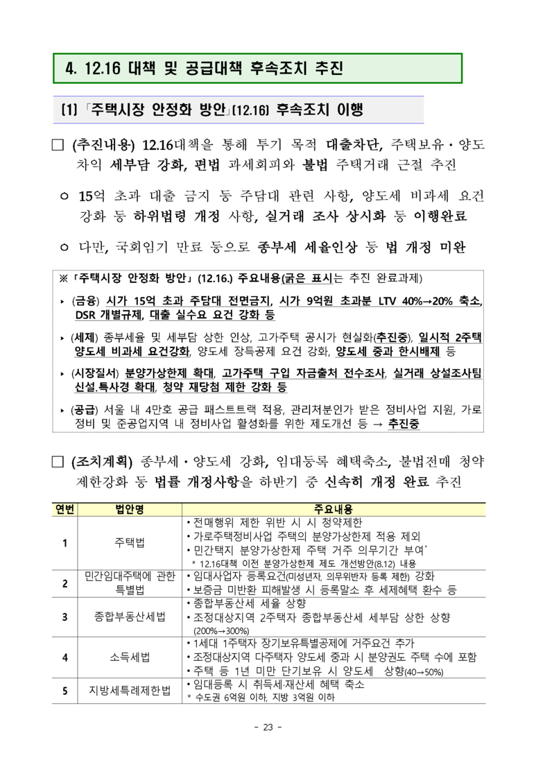 7. 12.16 주택시장 안정화 방안 후속조치 이행