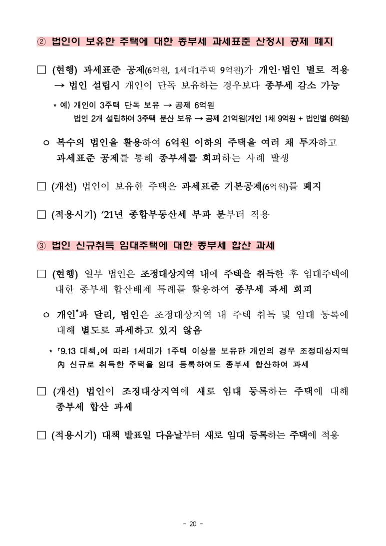 (3) 법인 보유한 주택에 대한 과세표준공제(6억원, 1세대1주택 9억원)을 폐지