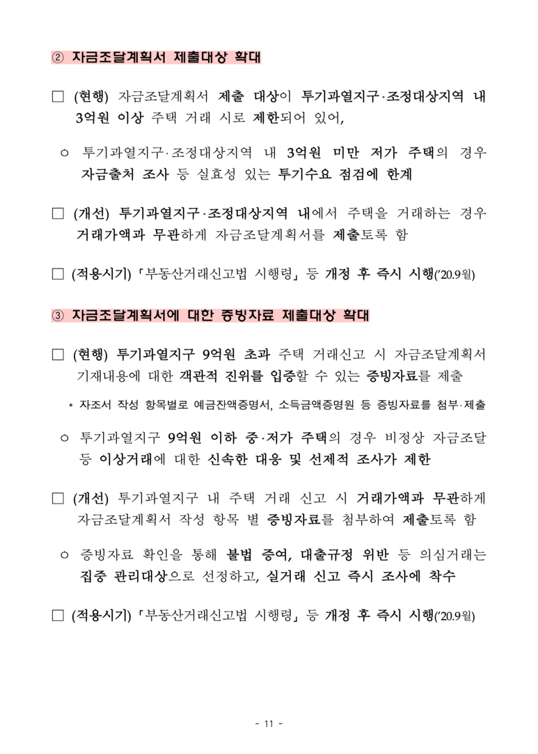 (3) 증빙자료 제출 대상 확대 : 투기과열지구 9억 초과시 -> 투기과열지구 전체