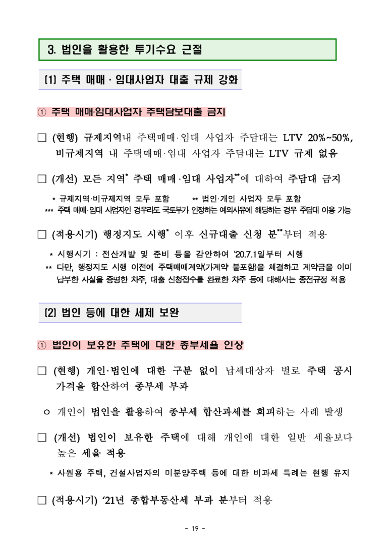 (1) 주택 매매 및 임대사업자 주택담보대출 금지 : 모든 지역 매매 및 임대사업자에 대한 주택담보대출 금지