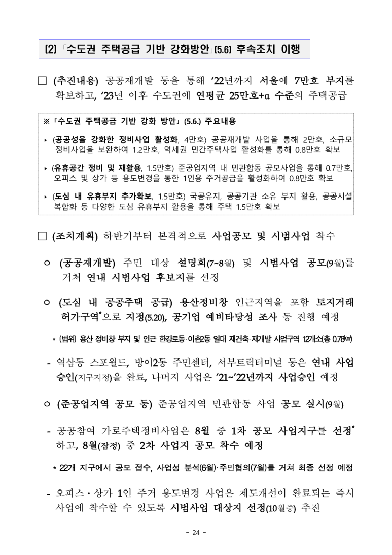(6) 수도권 주택공급 기반 강화방안(5.6) 후속조치 시행