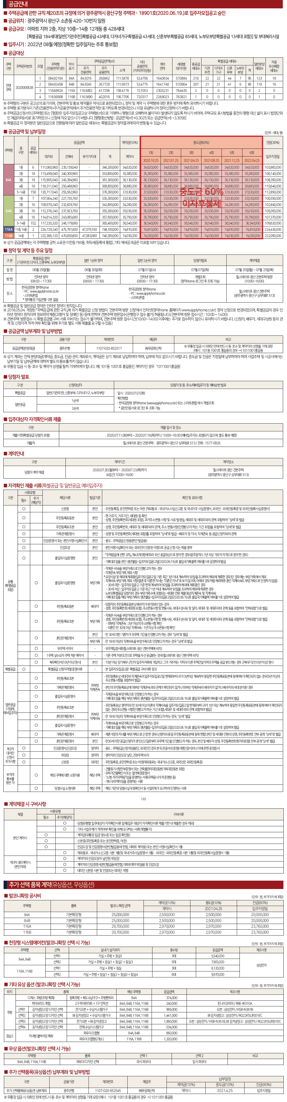 (2) 특별공급요건 : 10년이상 장기복무 무주택 세대구성원 및 군인 / 청약 6개월 경과 / 지역, 면적 예치금충족(광주 250만원)