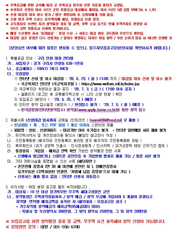 * 군인특별공급과 관련된 정보는 기존 포스팅을 참고바랍니다.