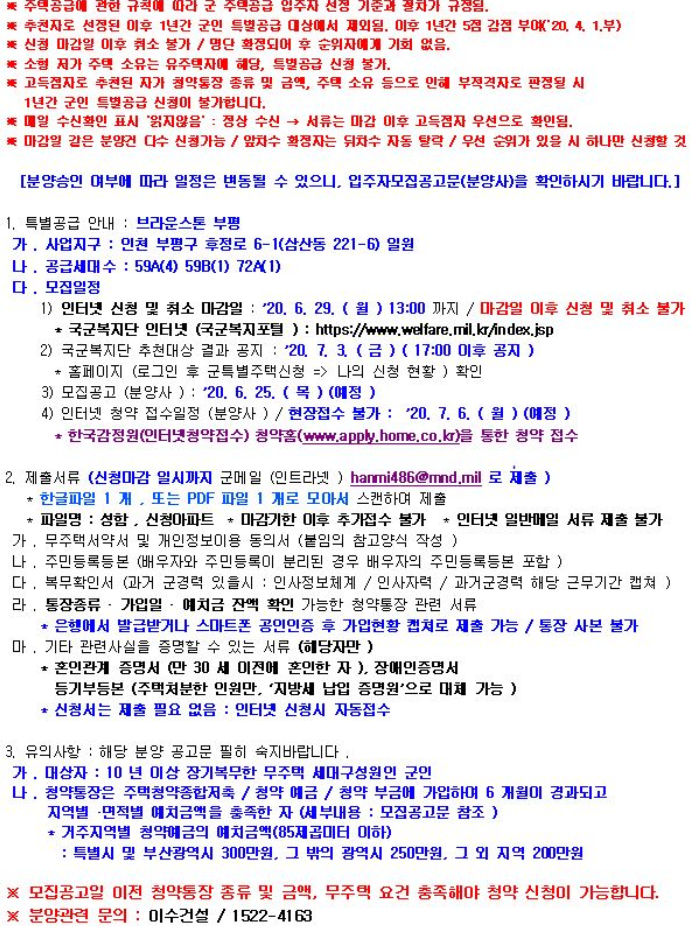 * 군인특별공급과 관련된 정보는 기존 포스팅을 참고바랍니다.