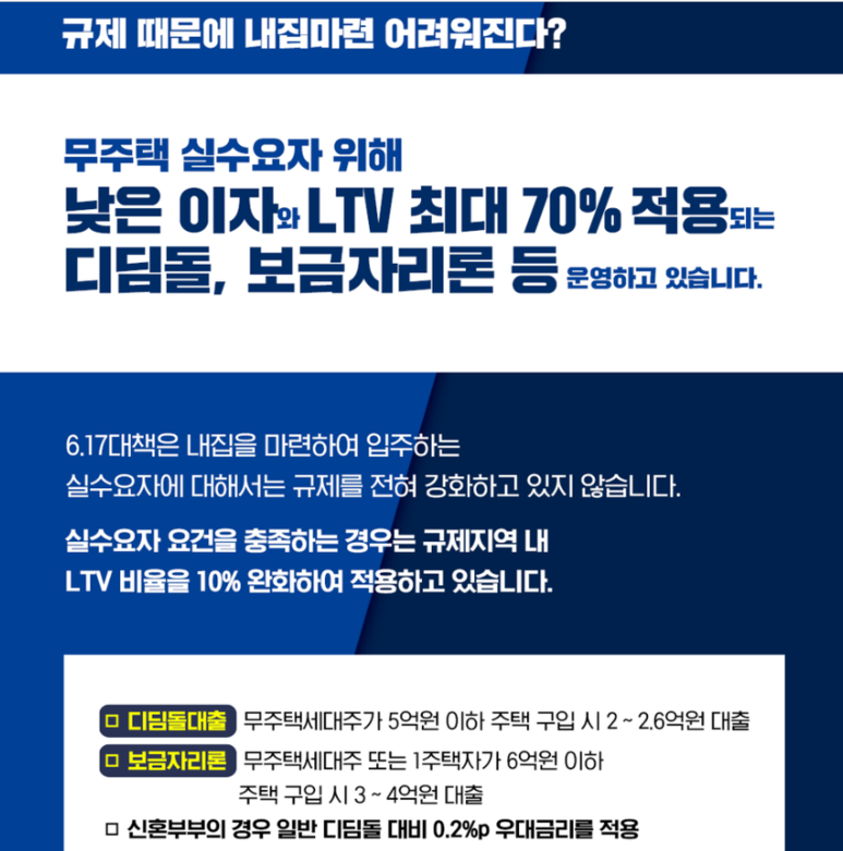 실수요자 요건(LTV 비율 10% 완화 적용, 투기과열지구 40+10% / 조정대상지역 50+10%)