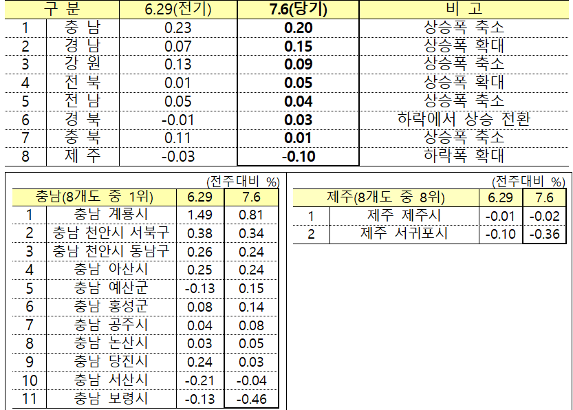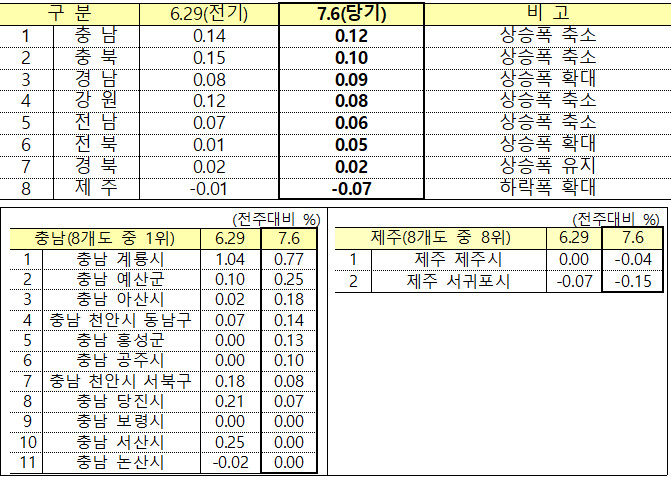 ㅇ [8개도 : +0.08% → +0.07%]