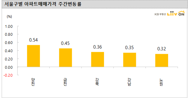 -서울 아파트 매매가격의 상승세가 예사롭지 않았습니다. 하락한 지역 없이 양천구(0.54%), 금천구(0.45%), 강북구(0.36%), 강남구(0.35%), 노원구(0.32%) 등 여러 곳에서 코로나 확산 이전의 상승률만큼 확대되고 있습니다.