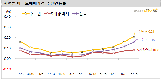 오늘은 6월 15일 기준 KB부동산 주간 아파트 가격동향을 살펴보겠습니다.